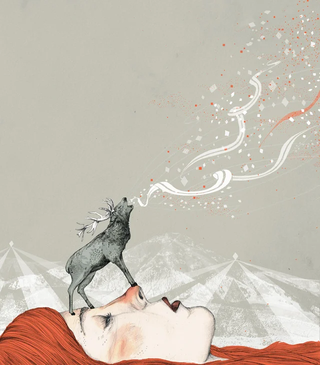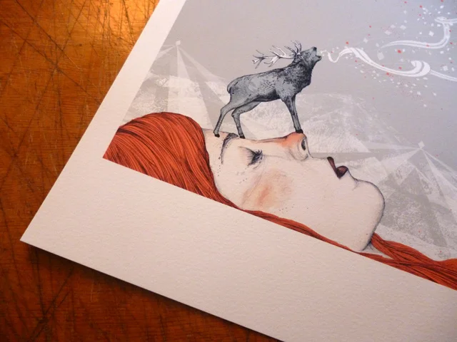 DEER LADY originally created for 3petitspoints Magazine in France. An adaptation of the illustration minus the handwriting is available via my shop & Society6.