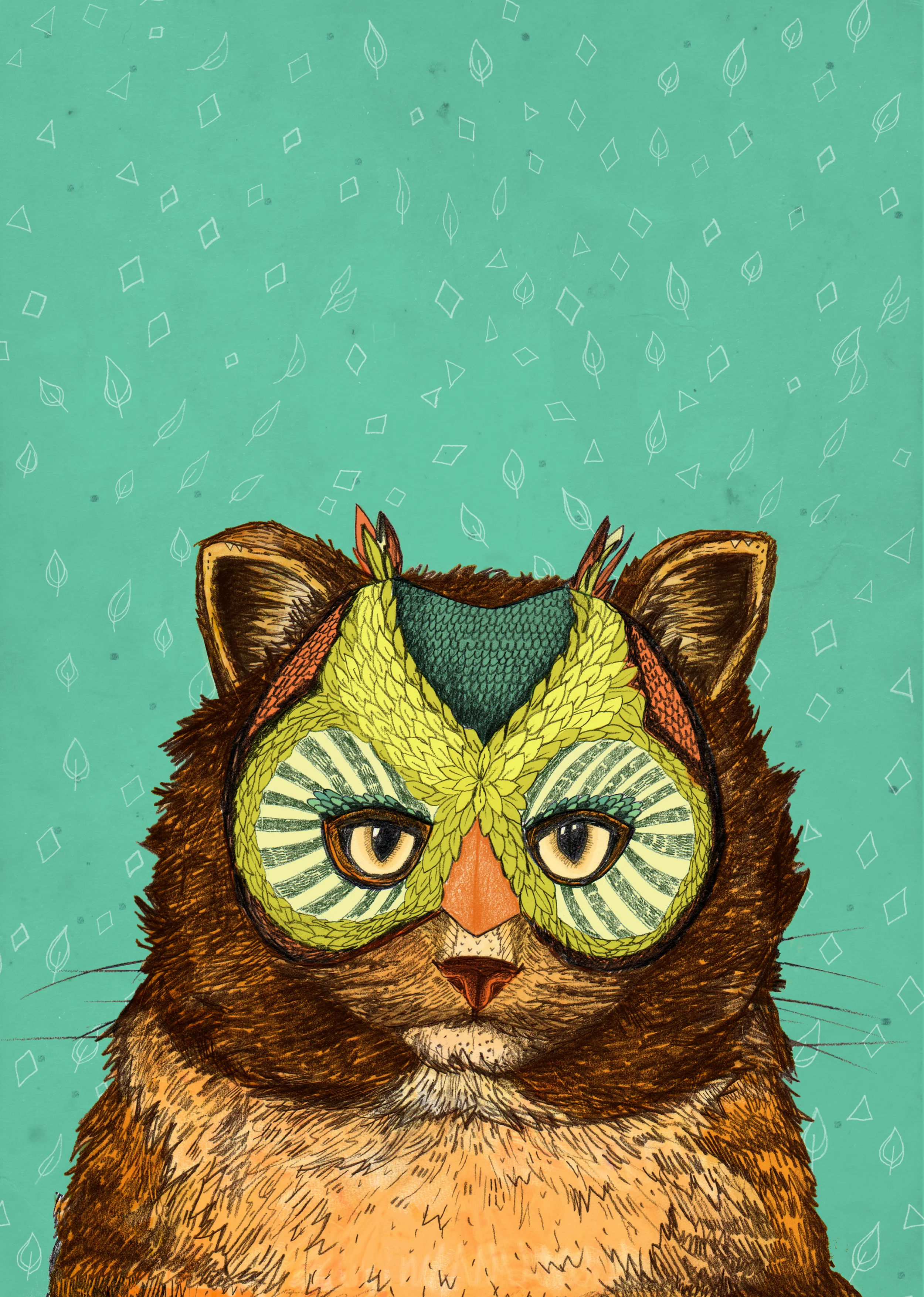 This is my OwlCat illustration for the Masquerade postcard book by Girls Who Draw.